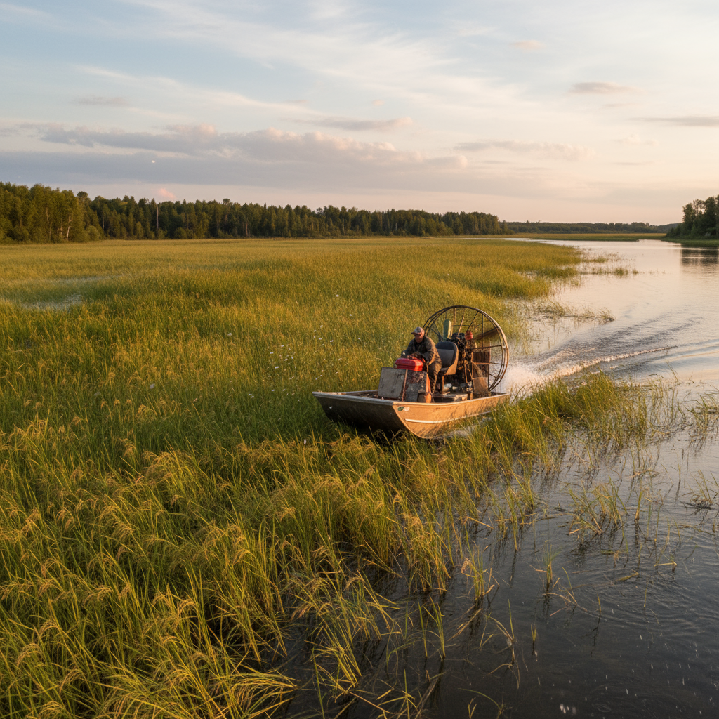 Modern Harvest: Airboat harvesting for scale while preserving stands and reseeding naturally.