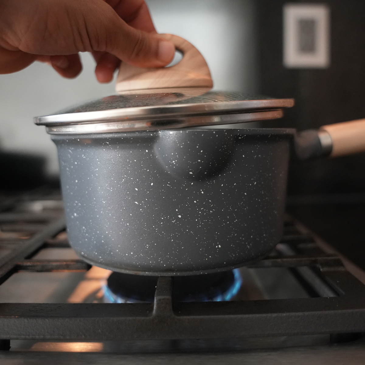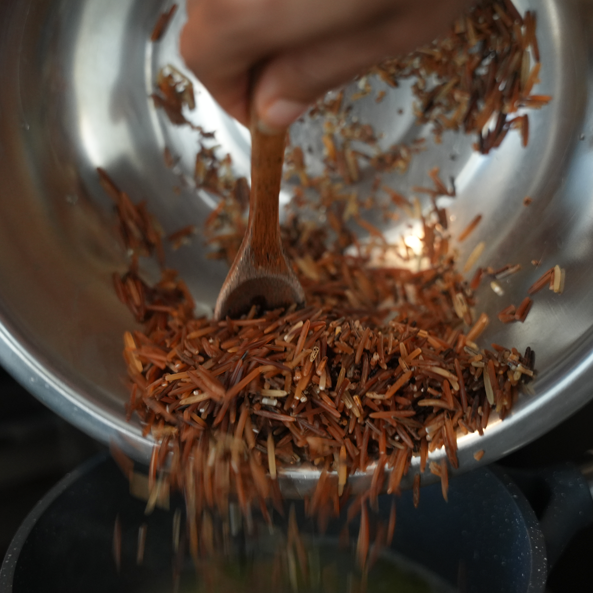 To reduce cooking time, we scarify the grains — gently scratching the surface to help water penetrate faster. This means you get the same deep, nutty taste in a fraction of the time.