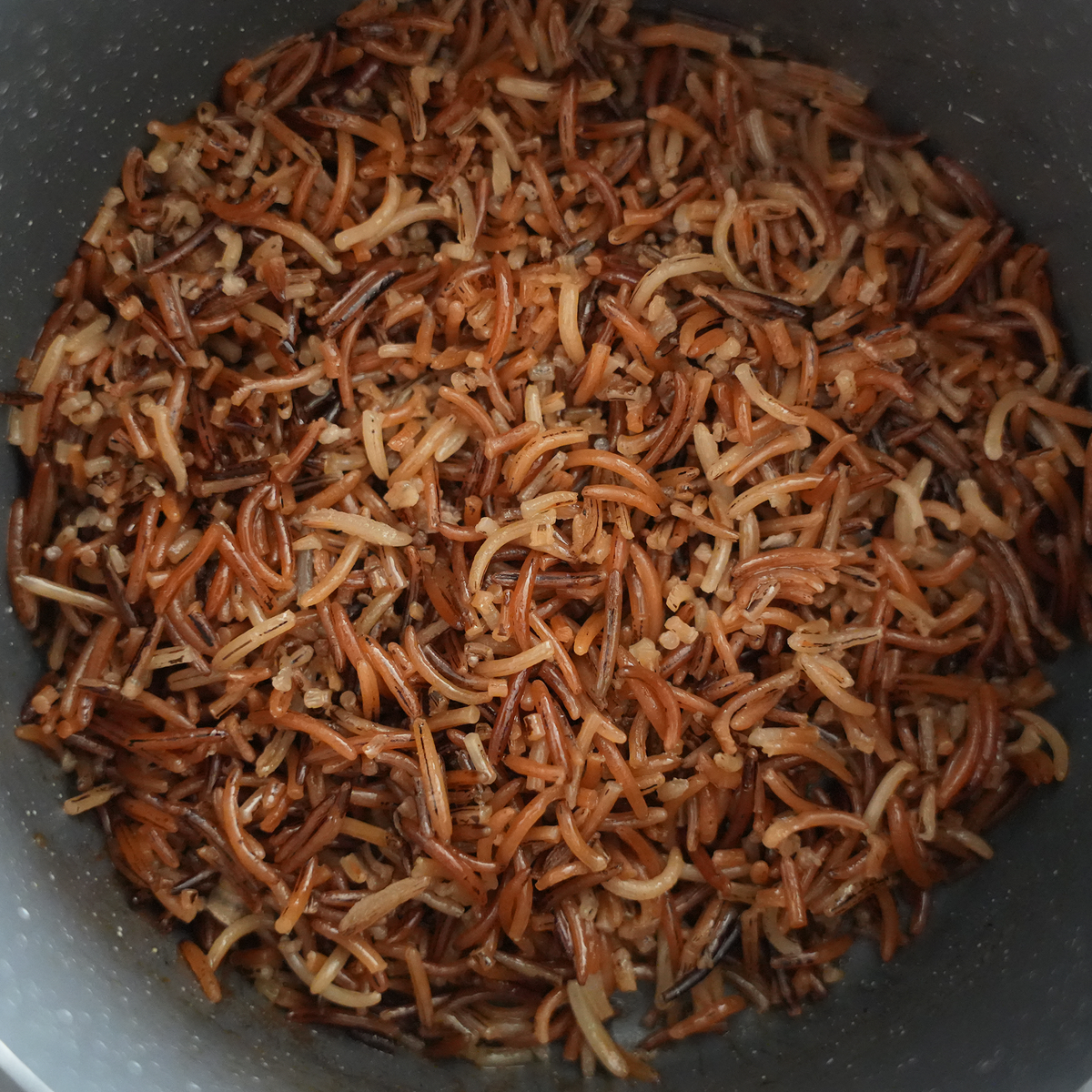 Because this rice is scarified, it cooks faster — about 20–25 minutes. Start checking around 20 minutes: the grains should split and curl while staying slightly chewy.