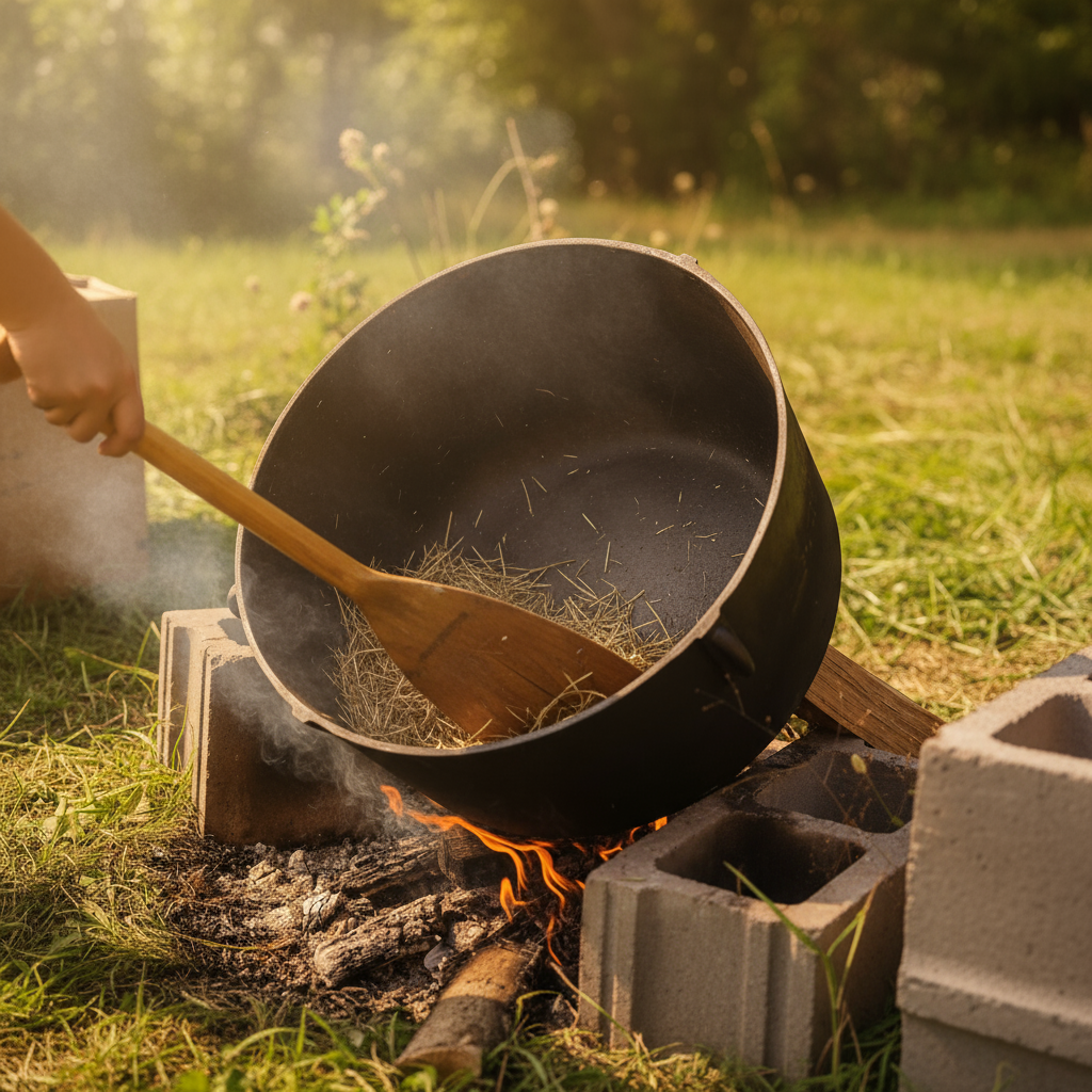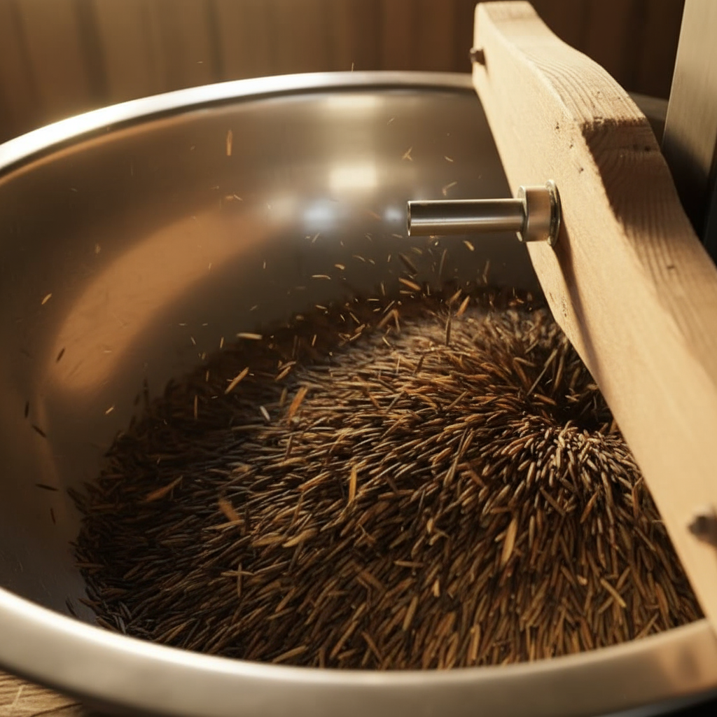 This is where fire meets grain. The dried rice is gently roasted over a wood fire — a traditional method that toasts the husk and infuses a deep, earthy aroma. Parching deactivates anti-nutrients and begins to separate the outer hull.