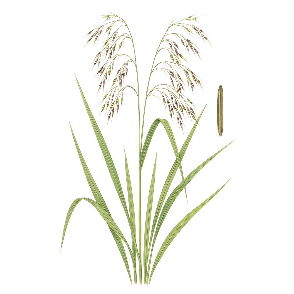 Distinctive Traits: Tall slender stems, drooping seed heads, green to bronze grains that darken when cured